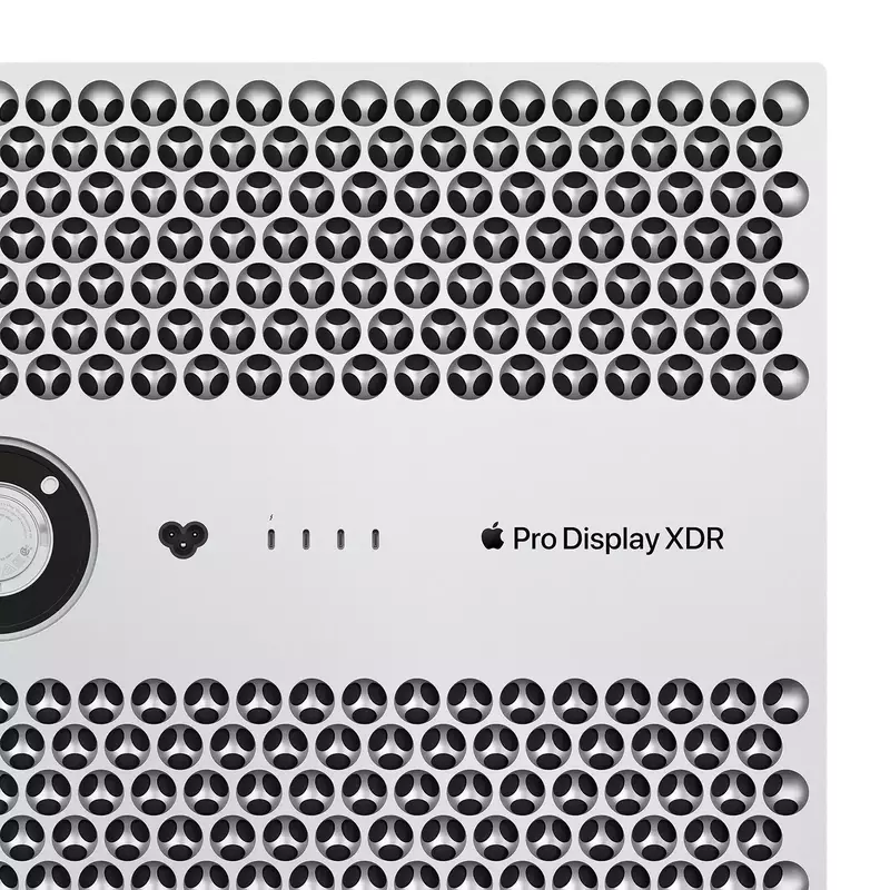 Алюминиевый корпус с отверстиями в форме решетки имеет значительные преимущества. Площадь открытой поверхности увеличена почти вдвое, поэтому терморегуляция происходит более эффективно. Благодаря быстрому и бесшумному охлаждению Pro Display XDR может неограниченно долго поддерживать максимальную яркость. Входные и выходные вентиляционные отверстия втягивают холодный воздух и отводят горячий, не давая ему снова попасть в систему.